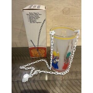 The White Elephant Vintage Party Glass Hands Free Drinking Kitsch Gag Gift from the 1970s is a unique cocktail glass designed for parties. Made from plastic with a rainbow color theme, this vintage piece adds a fun and retro touch to any gathering. Perfect for those who enjoy collecting vintage glassware or looking for a quirky gift for a friend, this hands-free drinking glass is sure to be a conversation starter at any party. Cheers to celebrating in style with this original and nostalgic piece from the 70s.
