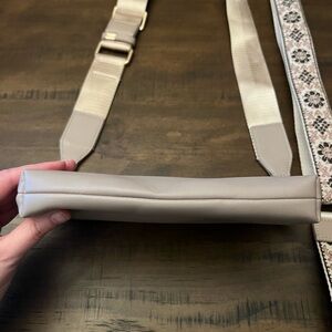 Elevate your style with the White Elm taupe Crossbody Bag. This chic accessory features a sleek design and a versatile beige color, perfect for any outfit. Model is the Skye Sling and has only been used a few times. Super supple vegan leather, also comes with decorative crossbody strap to change out. No rips, tears, or stains, EUC!
