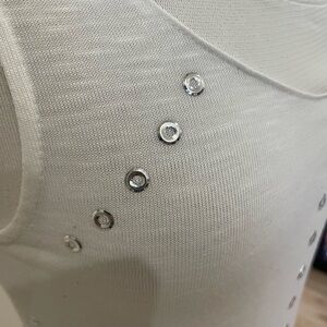 Elegant white tank top with stylish embellishments. Perfect for a chic and modern look.