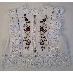 White Embroidered Crochet Crop Top XS Fairy Festival Coquette Dainty Romantic