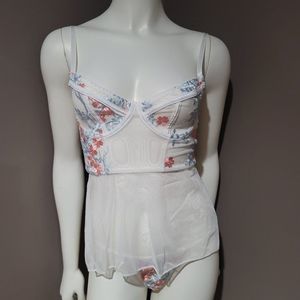 White Embroidered Mesh Underwire Slips With Thong Lingerie