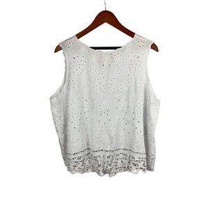 White Embroidered Sleeveless Top XL By Dancing Gecko Hawaii Cotton