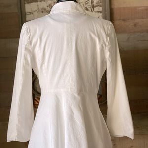 Shoulder pads adds to style to create a tailored look. fits best on a tall body frame. Fabric is clean white and breathable fabric with lining. Barely worn.