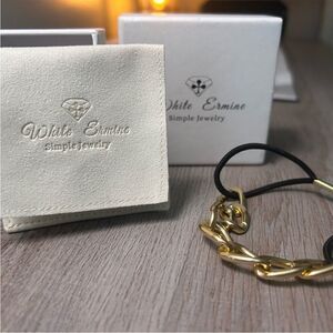 Chic gold chain bracelet by White Ermine. Includes a sleek pouch. Ideal for any event. Hair tie AND bracelet
