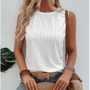 White Eyelet Embroidery Tank Top Regular Fit Casual Boho