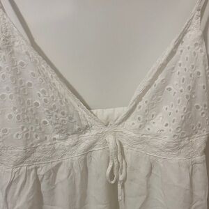Elegant white sleepwear with delicate eyelet lace trim. Perfect for a comfortable night's sleep.