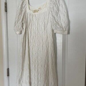 White Eyelet Mini Dress with Puff Sleeves - Size S - Maeve Anthropologie