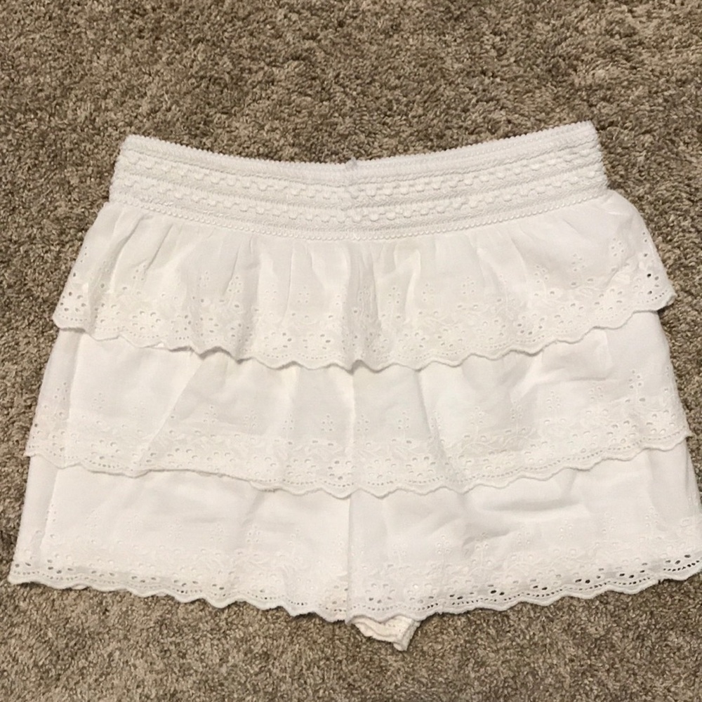 White Eyelet Ruffle Layered Shorts