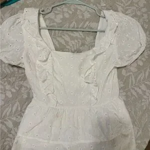 White Eyelet Ruffle Top
