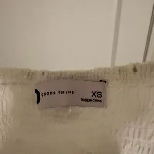 Charming white dress with eyelet details and ruffle accents. Perfect for a casual outing.