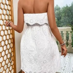White Eyelet Strapless Floral Dress – Perfect for Summer & Casual Outings