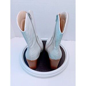 White Faux Crocodile Leather Ankle Boots With Side Zipper & Block Heel Size 9