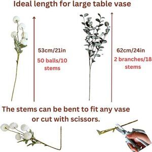 🧿Long Stem Artificial Flowers Picks and Sprays - Ideal for tall vases or terracotta vase, these long stem artificial flowers for vase have realistic looking, can be used as artificial filler flowers or paired with other floral stems such as tulips lillies peony to create unique flower arrangements artificial centerpiece. From boho floral arrangement to farmhouse flower arrangement, the possibilities are endless with these artificial eucalyptus stems and white artificial flowers bulk.