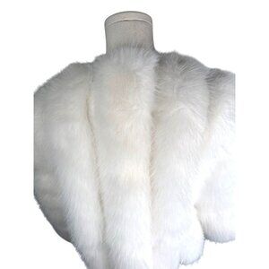 White Faux Fur Coat - Medium Size 6 Polyester Fabric & Lining