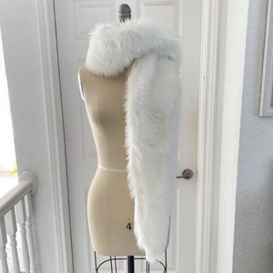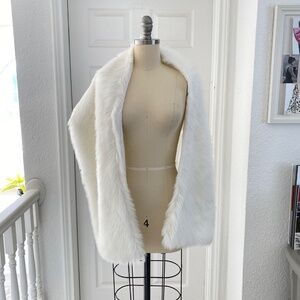 White Faux Fur Long Rectangle Shawl Scarf