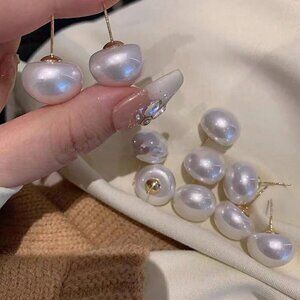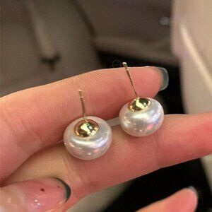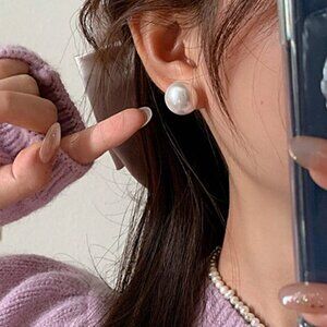 White Faux Pearl Stud Earrings Flat Large Imitation High Gloss Earring