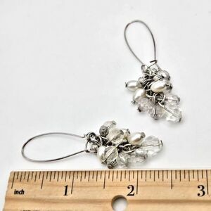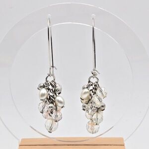 White Faux Pearls and Faceted Clear Beads on Silvertone French Hooks