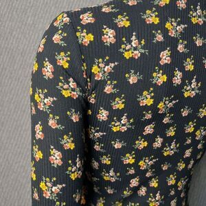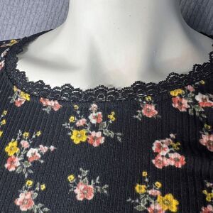 White Fawn Tillys Tee Shirt Black Floral Long Sleeve Cropped Stretch Juniors Medium