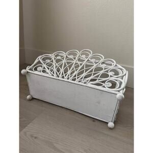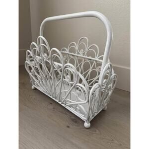 White Fiddlehead Bamboo MCM Hollywood Regency Magazine Rack