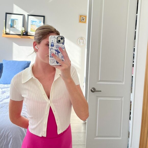 white fitted ribbed button down