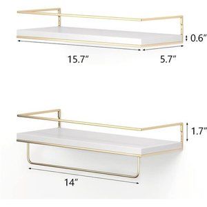 White Floating Shelves - Set of 2, Wall Mounted Hanging Shelves with Golden Rack