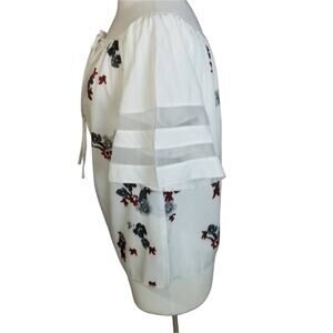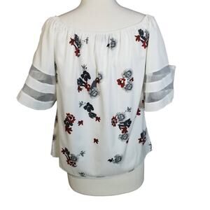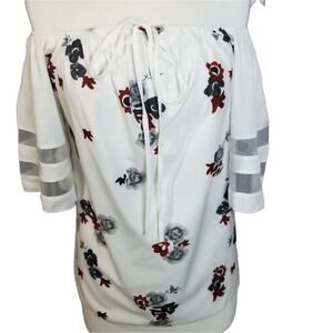 White Floral Blouse NWOT Medium Sheer Sleeve Accent Off the Shoulder Scoopneck