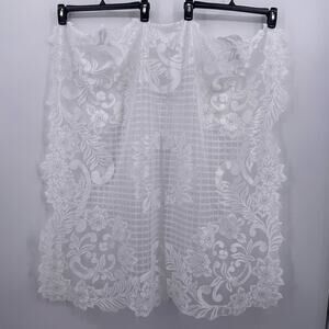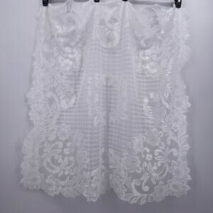 White Floral Checkered Lace Tablecloth 39 inch Square Overlay Table Cover