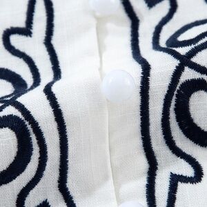 Color: White with black floral embroidery