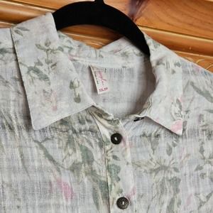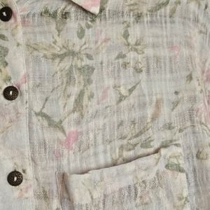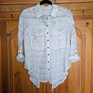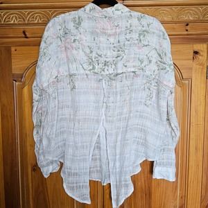 White Floral Free People Button Up Open Back Long Sleeve Shirt Size XS