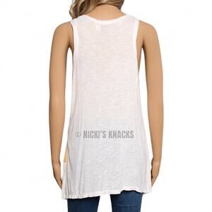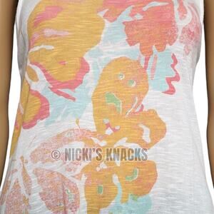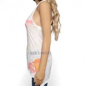 Float into sunny days with this breezy white floral tank top. Featuring a vivid butterfly print in tropical orange, pink, and blue, the soft rayon fabric drapes with ease. A relaxed silhouette, scoop neckline, and asymmetrical hem make it a perfect pick for festivals, beach trips, or everyday boho style.
