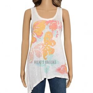 White Floral Handkerchief Hem Tank Top Butterfly Print Asymmetrical Hem Size M