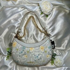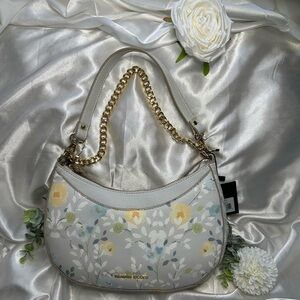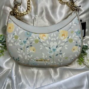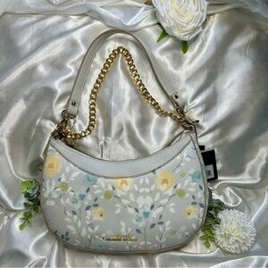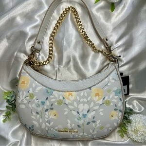 White Floral Hobo Shoulder Bag with Gold Chain Strap – NWT