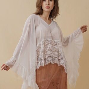 Oversized white sheer boutique embroidered top! Reversible and super lightweight. Both models are wearing size S. Go true to size!