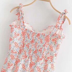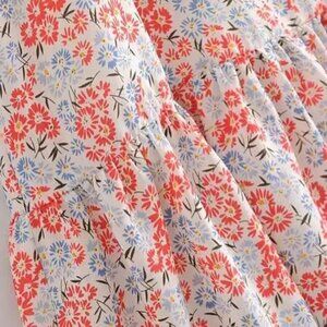 White, Blue, and Red Floral Dress made by the manufacturer of the Reformation Nikita Shelby Midi Dress