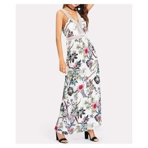 White Floral Sleeveless Crochet Lace Maxi Dress