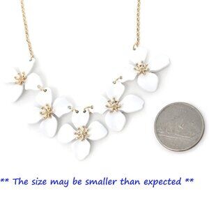 Features: Features five beautifully crafted soft silicone white flowers on a chic gold-tone chain. The floral bib design adds a bold yet feminine touch, making it versatile enough for casual jeans or a fancy dress.