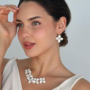 Elegant and Feminine, this white floral statement necklace is the perfect finishing touch for any look.