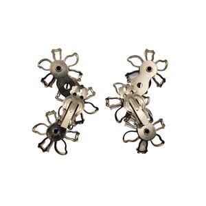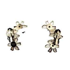 White Flower Clip Earrings Ear Climbers Rhinestones Lucite Petal 60s Mid Century