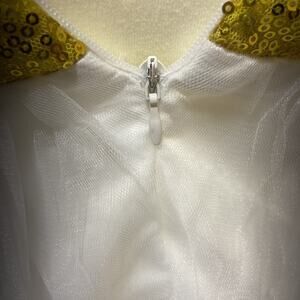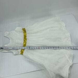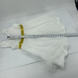The White Flower Girl Sees With Gold Ribbon And Bow is a large-sized formal dress designed specifically for young flower girls. The dress features a beautiful white color with intricate gold ribbon and bow detailing, adding a touch of elegance and sophistication to the occasion. Perfect for weddings and formal events, this outfit is sure to make a charming and stylish impression on the special day. E