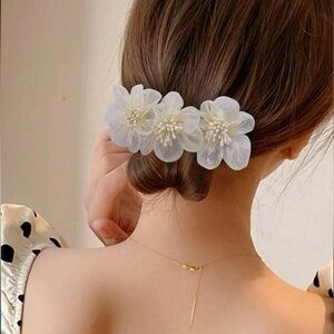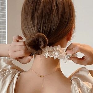White Flower Updo Bun Maker Floral Bun Holder Boho Bridal Flower Hair Jewelry