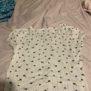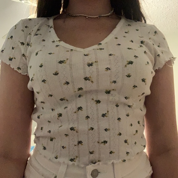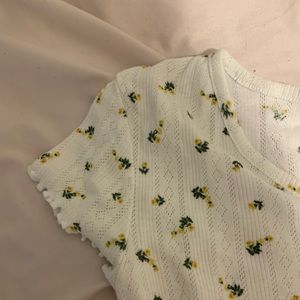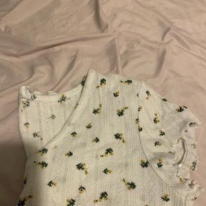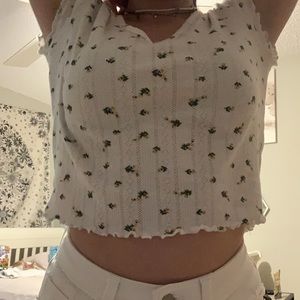 White Flowered Ruffled Crop Top