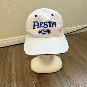 Classic white cap featuring blue Ford Fiesta logo. Perfect for casual wear.