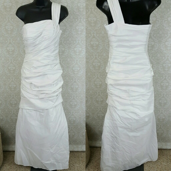 Beautiful white gown for a wedding or formal dance like prom or homecoming. Wrinkly and a few light dirt spots from storage, just needs to be dry cleaned.