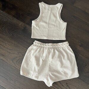 White Fox Boutique Cream Ribbed Tank and Shorts Set