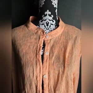 White Fox Boutique Crinkle Button Down Blouse Orange Peach Sz M/L Cover Up