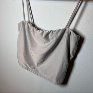 White Fox Boutique Cropped Spaghetti Strap Tank Top Size S Silver Gray Silky