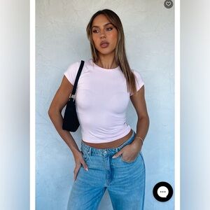 The Ultimate Cool Girl Basic the Too Blessed Tee in Baby Pink. This tee is fitted with short sleeves and a soft jersey fabric. We love paired with leather pants and stand out accessories, or for a more casual look just add sweats!