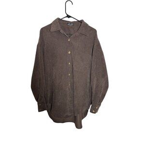 White Fox Brown Ribbed Corduroy Button-Up Shirt Shacket & Chest Pocket S/M S