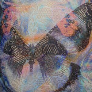 Really cute skirt from White Fox! Abstract artsy butterflies print on stretch lace with stretch mesh lining. Size small. Waist stretches from approx. 26-34 inches. length approx. 11.5 inches. Excellent condition.