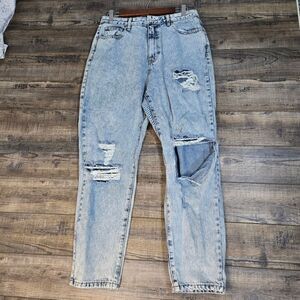 White Fox Distressed Baggy Super High Waist Jeans Size Xl Light wash